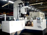 ? ? 主減速器殼三軸鏜孔車端面機(jī)床,本機(jī)床是為粗加工、半精加工主減速器殼三孔及車削主減速器殼主錐端面而設(shè)計(jì)的專用機(jī)床。本機(jī)床采用立臥復(fù)合式三面結(jié)構(gòu),左右端各布滑臺(tái)和鏜頭,用于兩端孔的加工。立頭采用西德標(biāo)準(zhǔn)的DSS系列雙向刀盤鏜車頭,用于主錐端面孔加工,鏜車頭主電機(jī)采用變頻調(diào)速,以滿足鏜大小孔時(shí)切削速度的變化。中間采用數(shù)控滑臺(tái),滑臺(tái)上安裝液壓夾具,以適應(yīng)不同品種的偏置距。